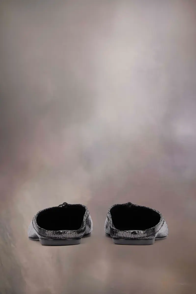 Maison Margiela presents the Tabi New Ballerinas, which take their design from ballerina shoes in the house archives. In a broken mirror finish, with mule silhouette, the pair feature the Tabi split-toe, inspired by the traditional 15th century Japanese sock bearing the same name – launched for the Maison’s debut collection in 1989. It captures the avant-garde and insubordinate spirit of the Maison and exists as a heritage classic, continually explored through each collection.