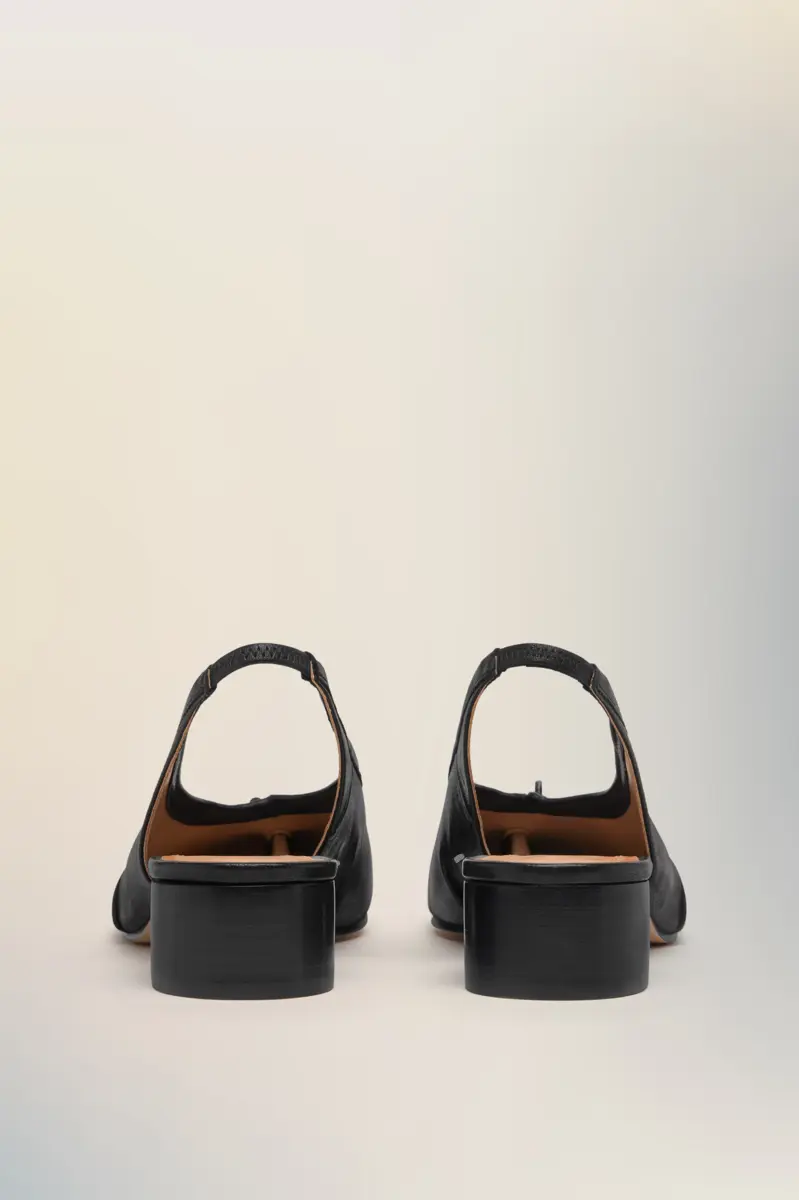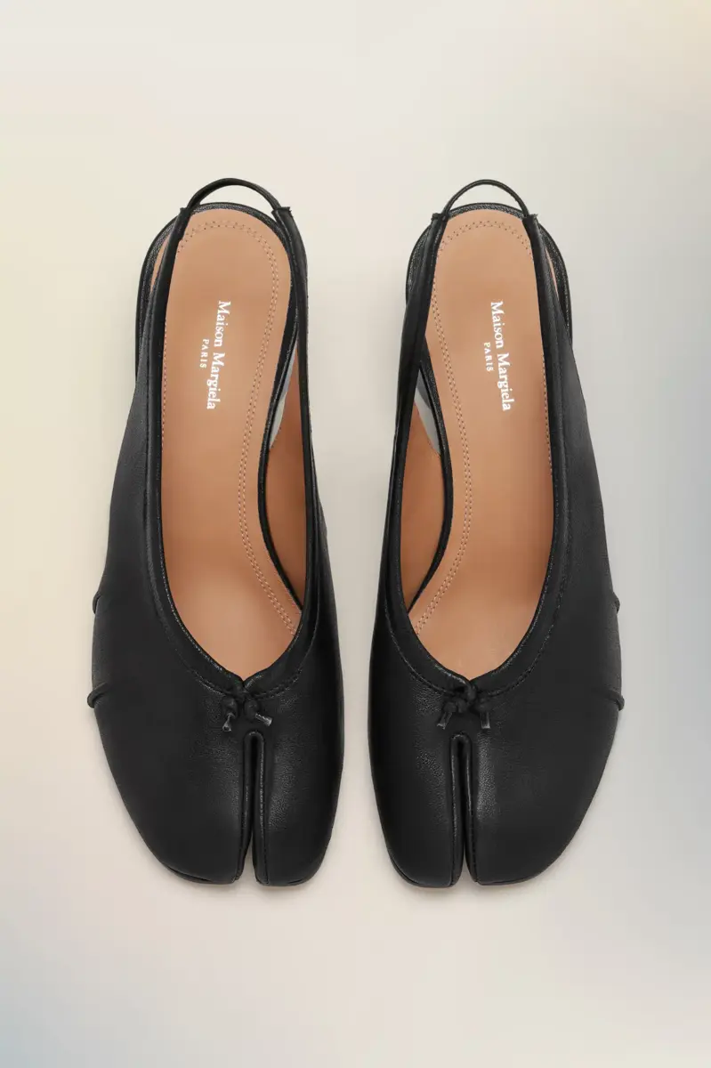 Maison Margiela presents the Tabi new ballerinas, which take their design from ballerina shoes in the house archives. The slingbacks have a 3cm heel and are crafted in soft nappa leather, with a handcrafted used treatment applied at the folds, base and seams, manually worked to create an artisanal vintage effect. They feature the Tabi split-toe, inspired by the traditional 15th century Japanese sock bearing the same name – launched for the Maison’s debut collection in 1989. It captures the avant-garde and insubordinate spirit of the Maison and exists as a heritage classic, continually explored through each collection.