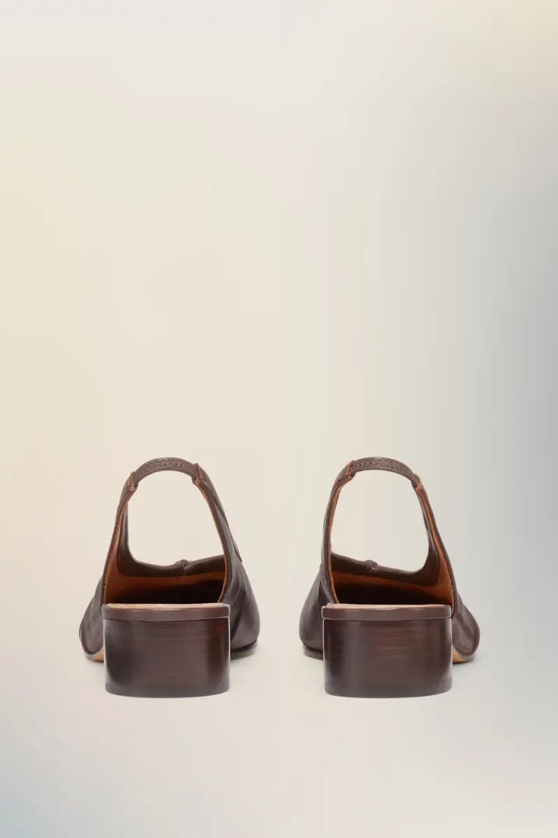 Maison Margiela presents the Tabi new ballerinas, which take their design from ballerina shoes in the house archives. The slingbacks have a 3cm heel and are crafted in soft nappa leather, with a handcrafted used treatment applied at the folds, base and seams, manually worked to create an artisanal vintage effect. They feature the Tabi split-toe, inspired by the traditional 15th century Japanese sock bearing the same name – launched for the Maison’s debut collection in 1989. It captures the avant-garde and insubordinate spirit of the Maison and exists as a heritage classic, continually explored through each collection.