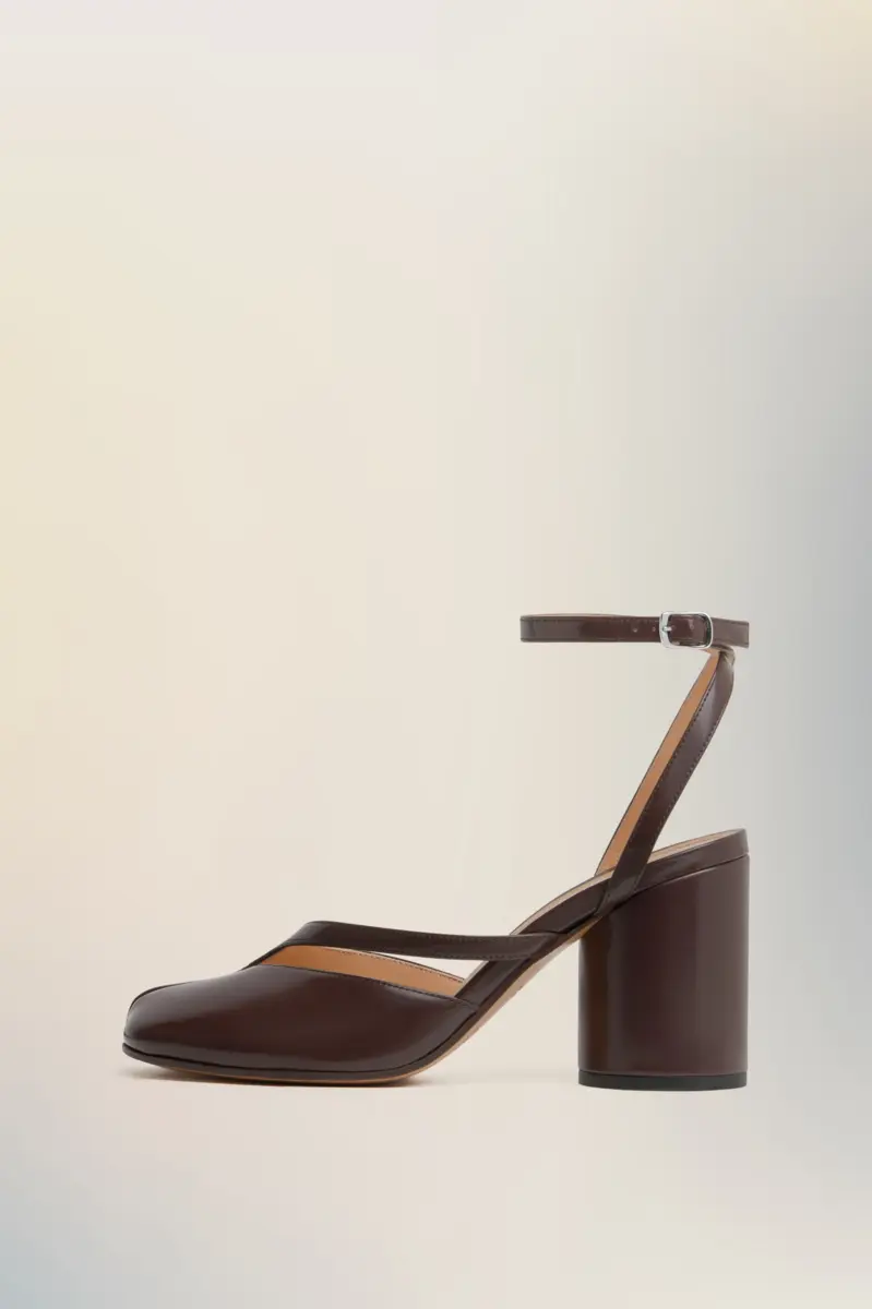 Crafted from brushed leather, the cut-out sandals feature an 8cm cylindrical heel, adjustable ankle strap and the Tabi split-toe shape, inspired by the traditional 15th century Japanese sock bearing the same name – launched for the Maison’s debut collection in 1989. It captures the avant-garde and insubordinate spirit of the Maison and exists as a heritage classic, continually explored through each collection. Maison Margiela’s signature stitch appears at the back; the opposite of a label.
