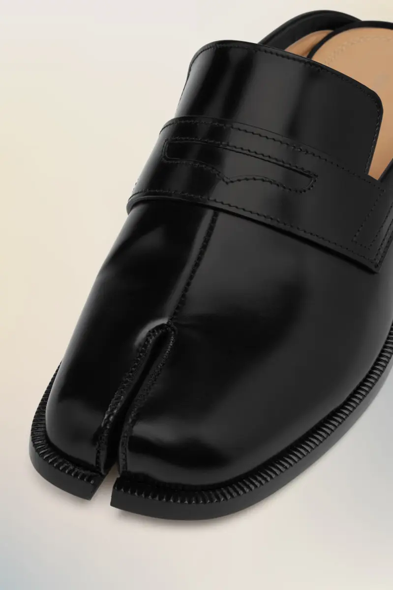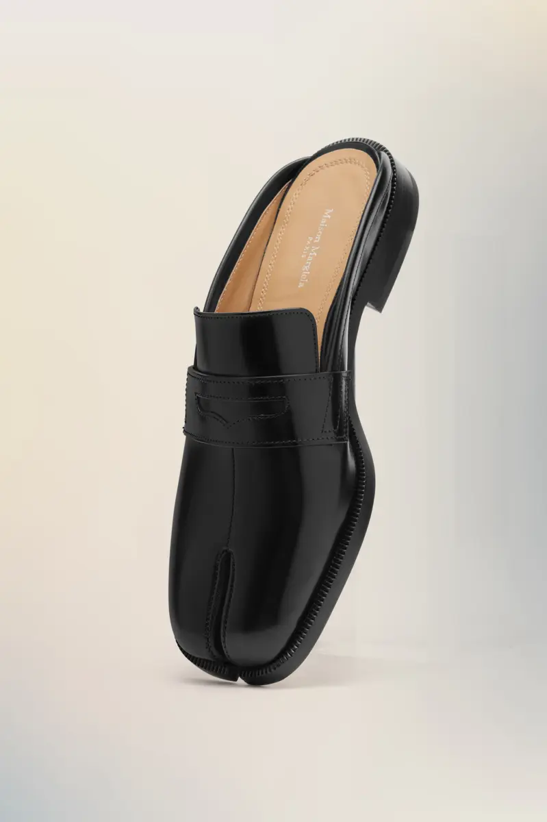 The Tabi City loafer comes in leather with a cut-away back to create a mule silhouette. It features the Tabi split-toe, inspired by the traditional 15th century Japanese sock bearing the same name – launched for the Maison’s debut collection in 1989. It captures the avant-garde and insubordinate spirit of the Maison and exists as a heritage classic, continually explored through each collection.