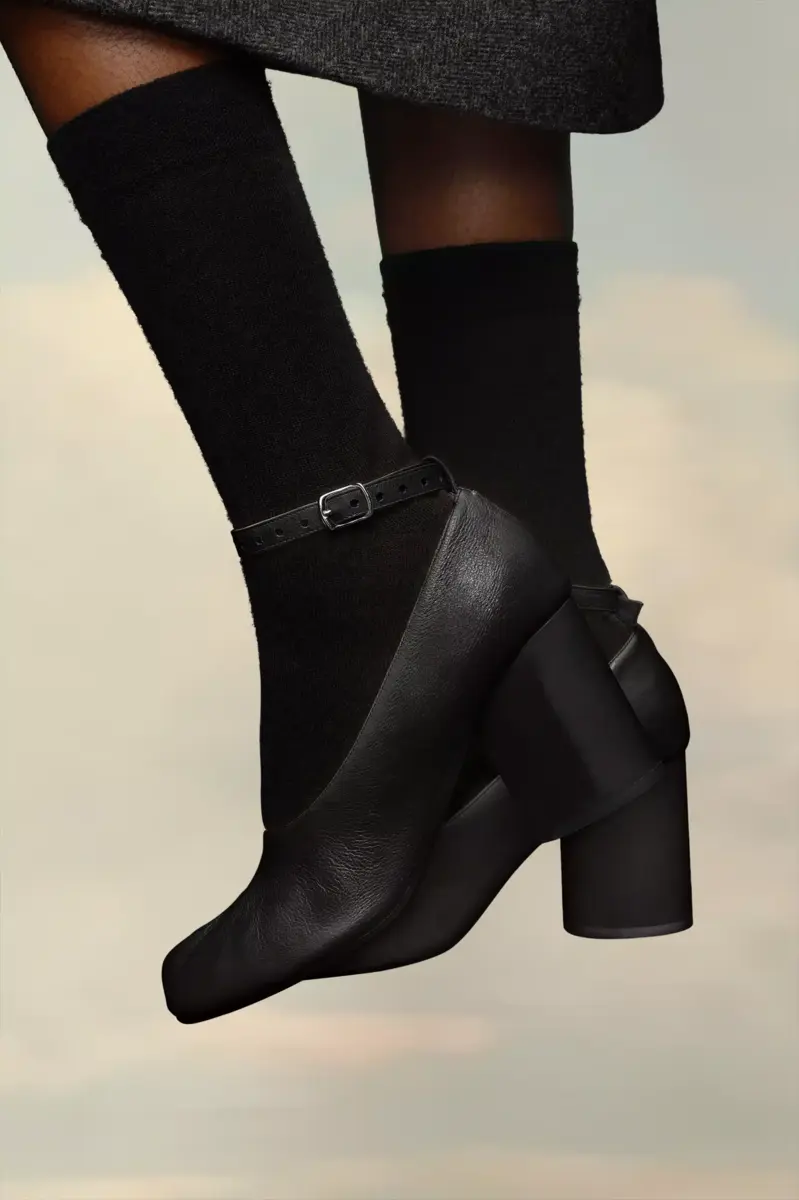 In soft nappa leather with an adjustable ankle strap, the 8cm cylindrical heel pumps feature the Tabi split-toe, inspired by the traditional 15th century Japanese sock bearing the same name – launched for the Maison’s debut collection in 1989. It captures the avant-garde and insubordinate spirit of the Maison and exists as a heritage classic, continually explored through each collection.