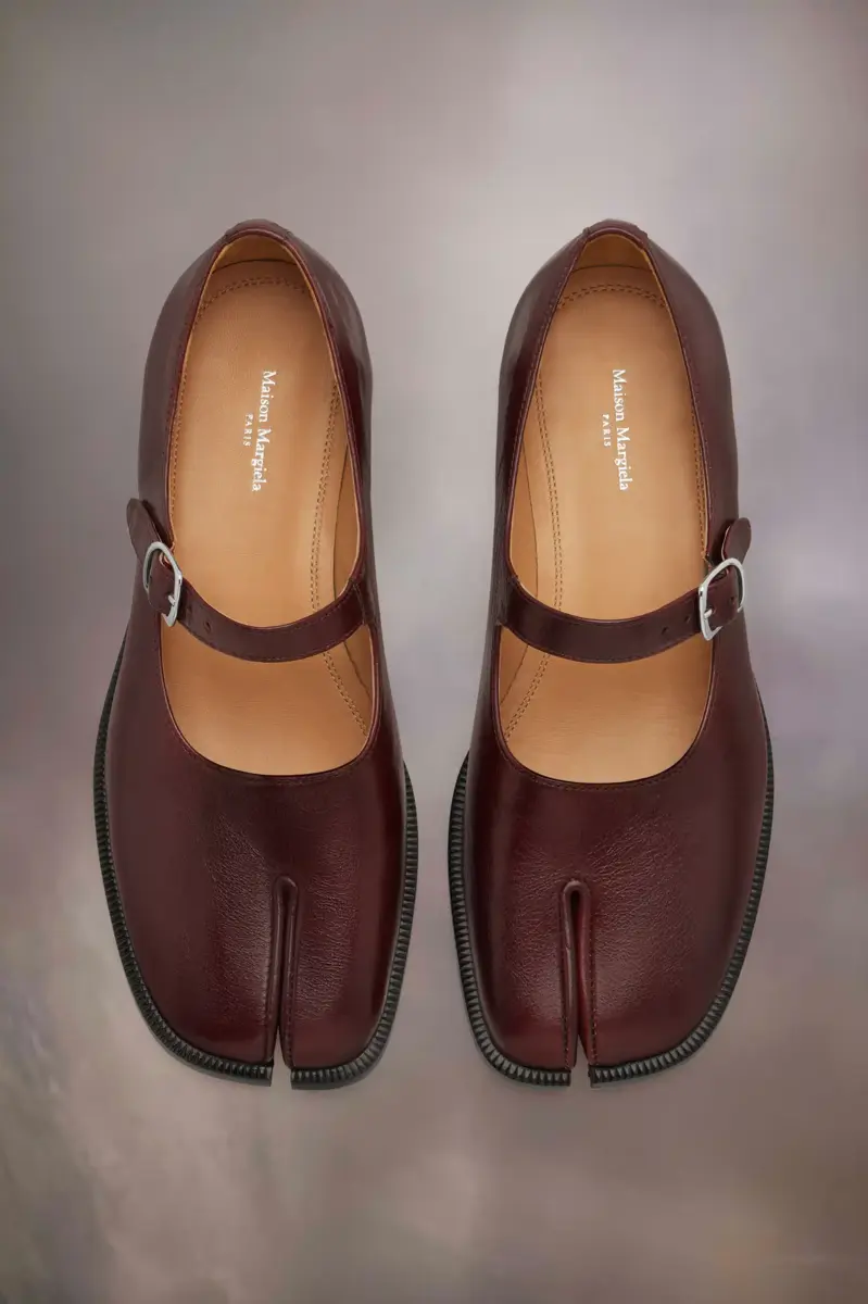 The Tabi City Mary-Jane shoe is crafted from shiny leather with an adjustable front buckle. It features the Tabi split-toe, inspired by the traditional 15th century Japanese sock bearing the same name – launched for the Maison’s debut collection in 1989. It captures the avant-garde and insubordinate spirit of the Maison and exists as a heritage classic, continually explored through each collection. Maison Margiela’s signature stitch appears at the back; the opposite of a label.
