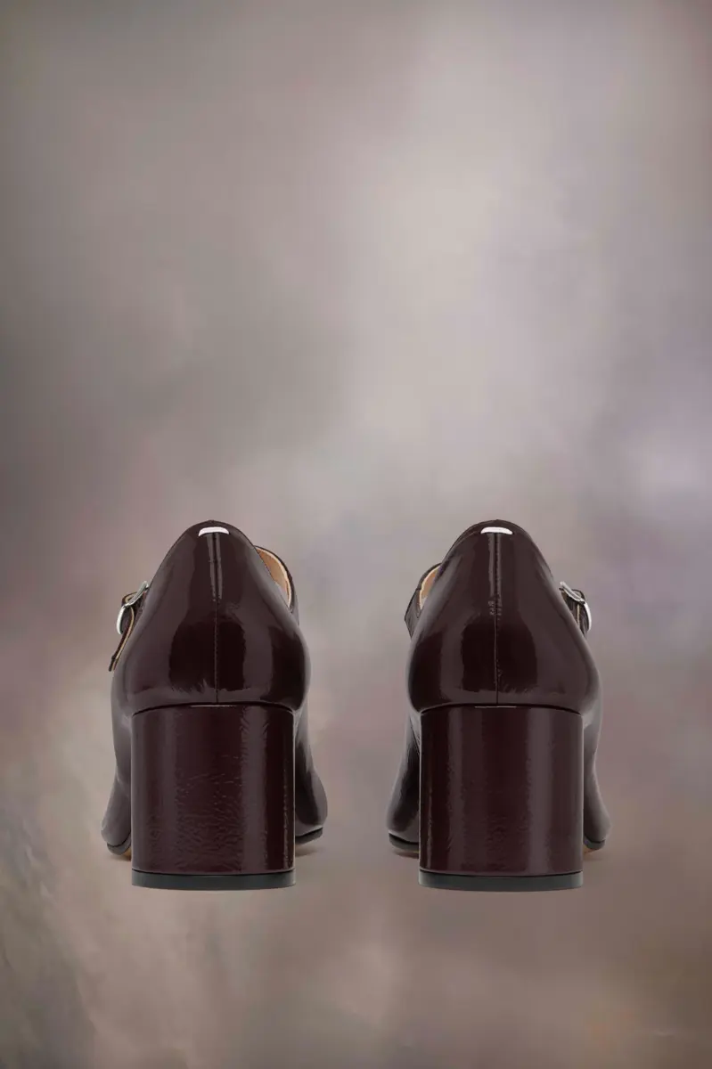 Crafted from soft patent leather with an adjustable front strap, the Mary-Jane shoes feature a 6cm cylindrical heel and the Tabi split-toe. The toe shape was inspired by the traditional 15th century Japanese sock bearing the same name – launched for the Maison’s debut collection in 1989. It is a symbol of the avant-garde and insubordinate spirit of the Maison and exists as a heritage classic, explored through the collections. Maison Margiela’s signature white stitch appears at the back.