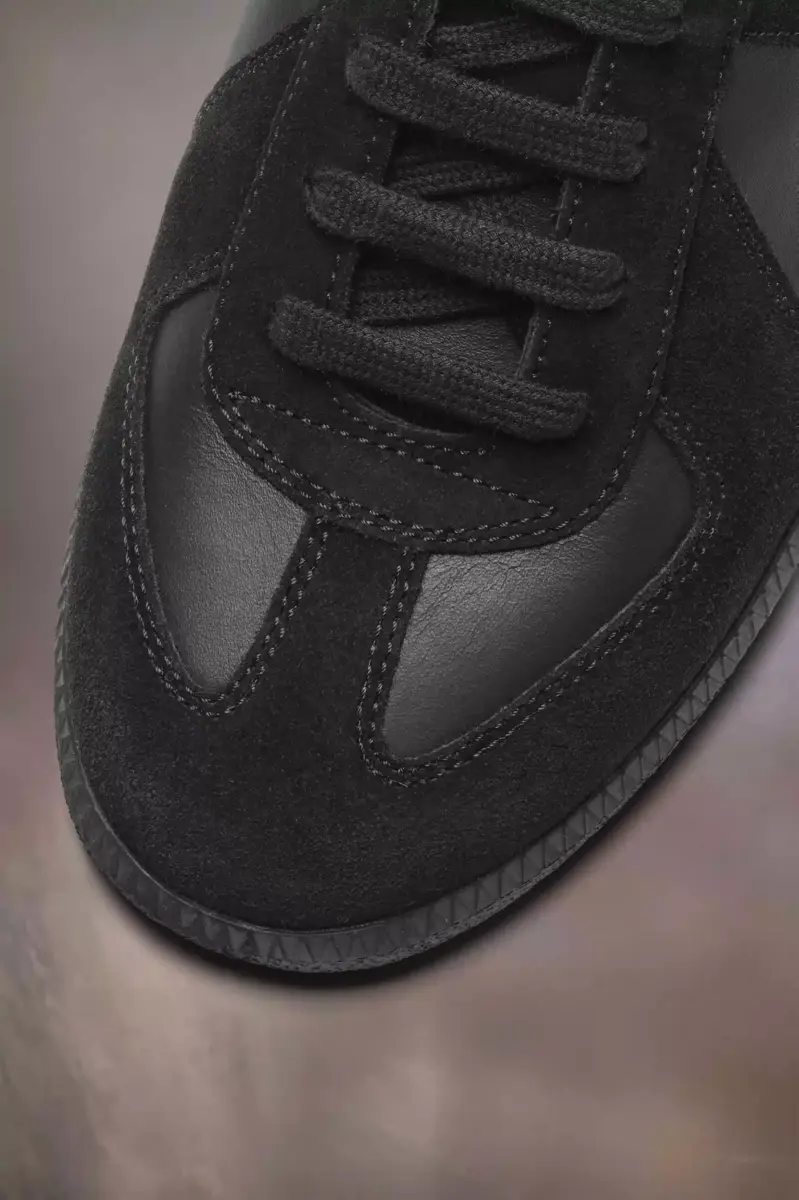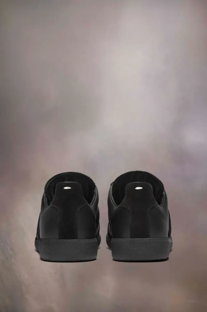 The Replica sneakers in reversed suede and nappa leather with a tonal sole. The back features a single white stitch showing the hand of Maison Margiela. The Maison’s iconic Replica sneakers are inspired by Austrian sports shoes from the seventies. Details on the Replica pairs are continually reworked in line with the season’s inspirations.